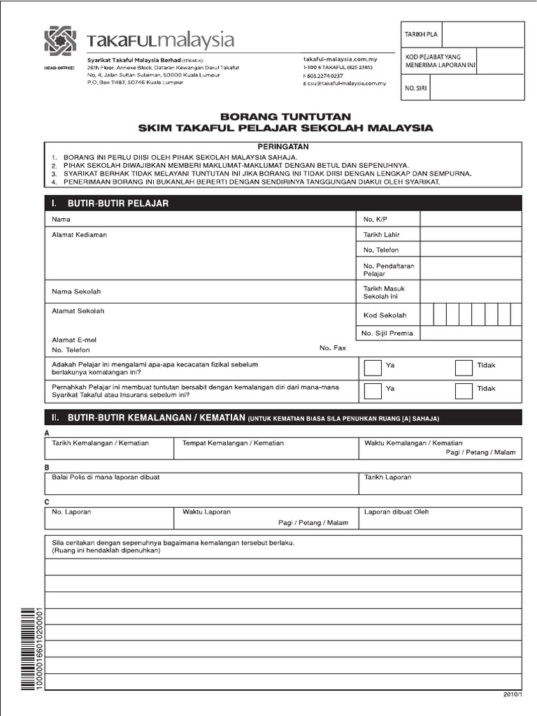 Email kepada KGM untuk ditularkan. 08102018 Skim ini disediakan oleh Syarikat Takaful Malaysia Sendirian Berhad STMSB dan penyertaan adalah wajib bagi semua pelajar sekolah-sekolah Kerajaan dan Bantuan Kerajaan. Borang tuntutan skim takaful pelajar sekolah malaysia.